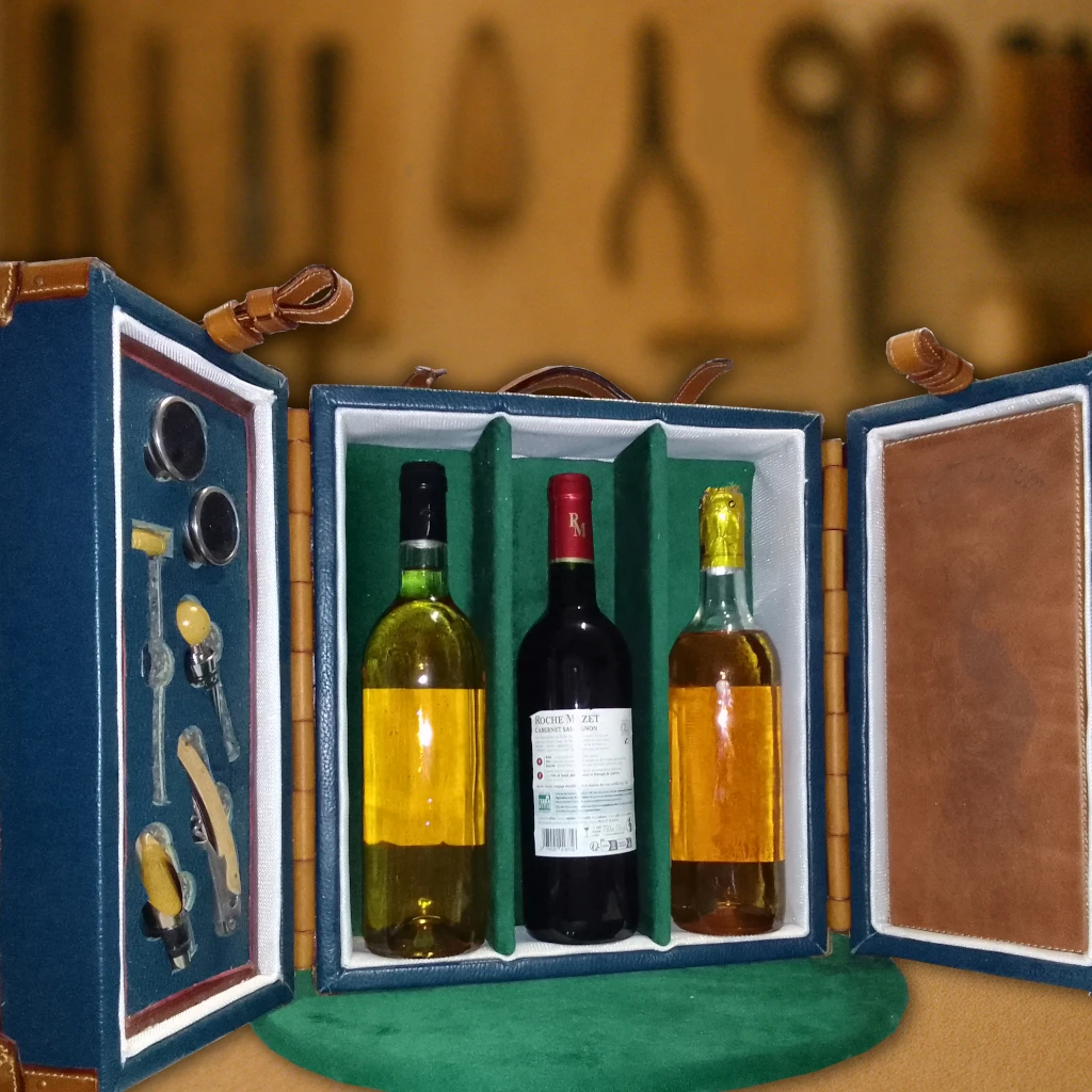 Vinéliane est une Composition artisanale haut de gamme conçue dans l’atelier Art’Illium. Ce coffret à vin en cuir permet de présenter et de transporter trois bouteilles de 75 cl dans un écrin élégant et durable. Idéal pour les amateurs de vin comme pour les professionnels (domaines viticoles, cavistes, restaurateurs).