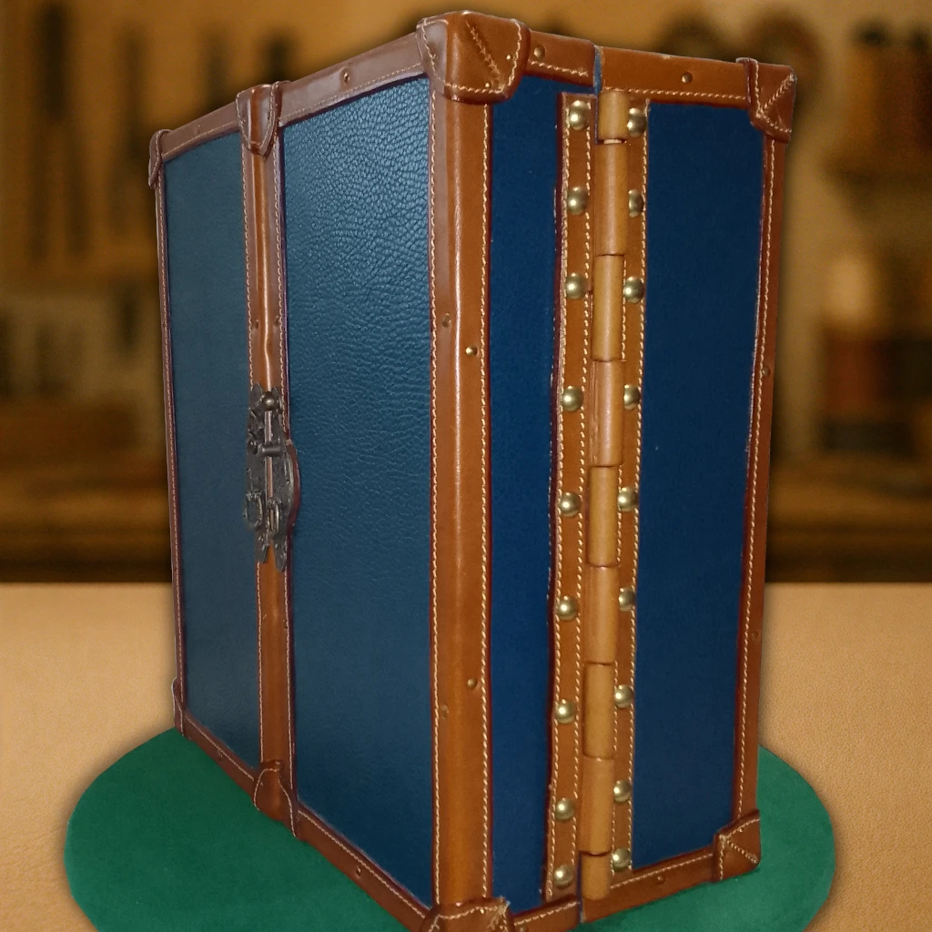 Je conçois et fabrique coffrets, malles, étuis et bagages sur mesure : coffrets à vin et spiritueux, malles de présentation, valises ou écrins d’objets précieux.